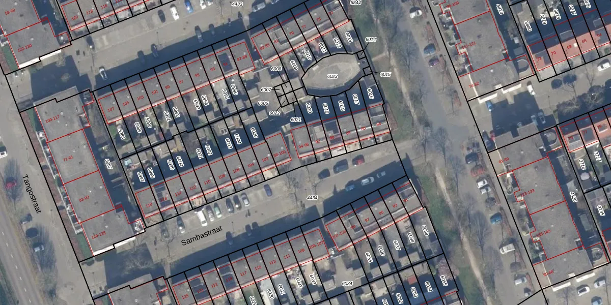 Het perceel waarop Sambastraat 94 staat heeft een oppervlakte van 634 m². Dit is een groot perceel. De perceeloppervlakte wordt geregistreerd door het Kadaster. Gedetailleerde informatie over de maten van dit perceel kunt u vinden in het rapport Kadastrale kaart met maatvoering van Sambastraat 94.
