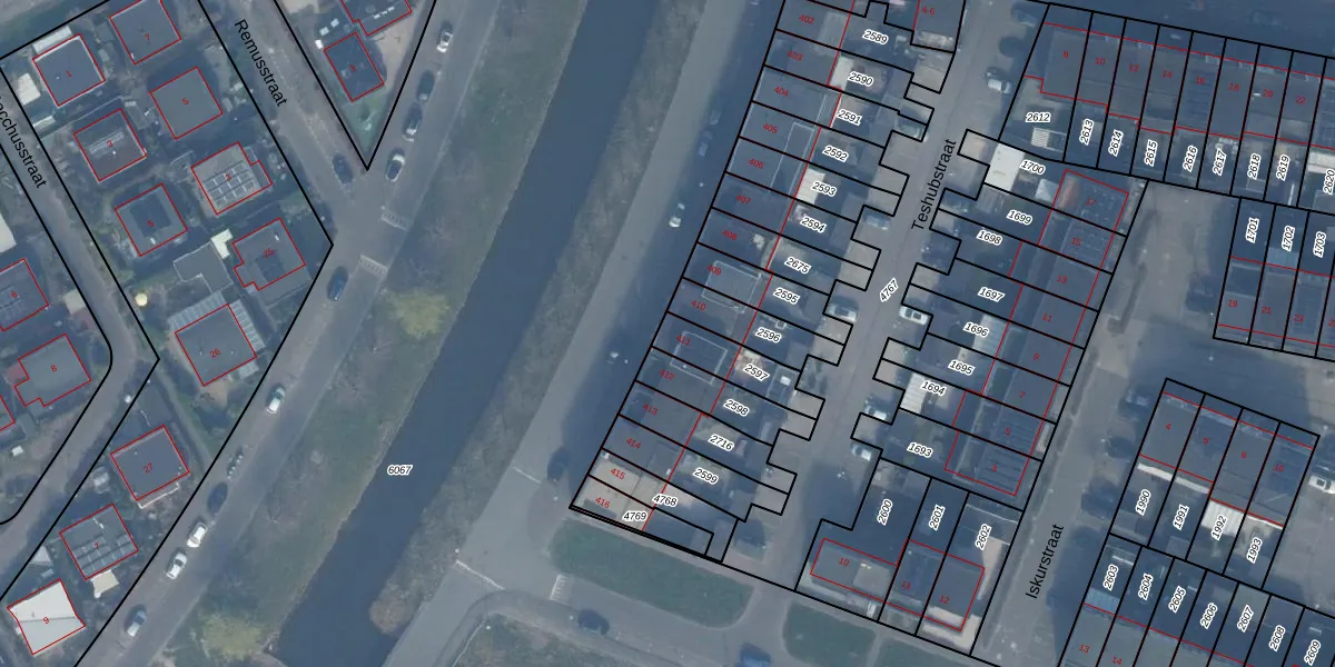 Het adres is gelegen op perceel 2597 in de sectie W en de kadastrale gemeente Almere. De kadastrale aanduiding is aldus AMR04-W-2597. Het perceel is kleiner dan gemiddeld in Almere. Het perceel is 144 m² groot, terwijl het gemiddelde ligt op 3327,75 m². Het grootste perceel in de kadastrale gemeente is 32,12 km². Het kleinste perceel heeft een oppervlakte van 0 m². Op het perceel bevinden zich geen andere adressen. In de Basisregistratie Kadaster (BRK) werden de grenzen van het perceel geregistreerd op 25-01-2018.