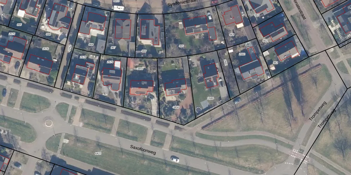 Het perceel waarop Saxofoonweg 8 staat heeft een oppervlakte van 700 m². Dit is een groot perceel. De perceeloppervlakte wordt geregistreerd door het Kadaster. Gedetailleerde informatie over de maten van dit perceel kunt u vinden in het rapport Kadastrale kaart met maatvoering van Saxofoonweg 8.