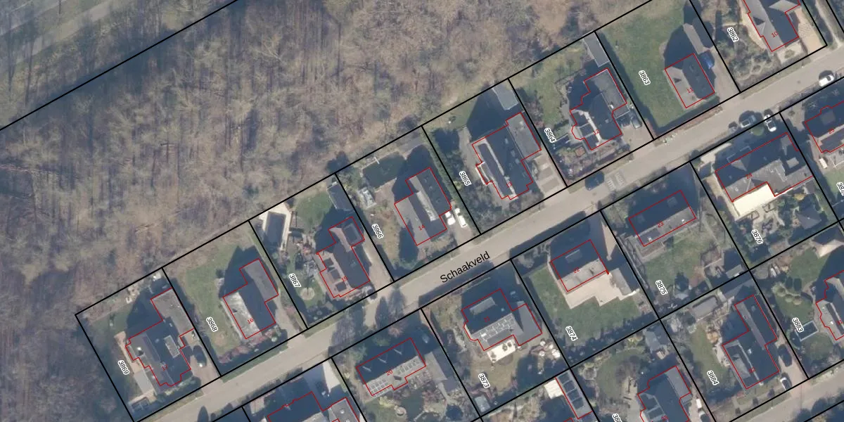 Het perceel waarop Schaakveld 14 staat heeft een oppervlakte van 687 m². Dit is een groot perceel. De perceeloppervlakte wordt geregistreerd door het Kadaster. Gedetailleerde informatie over de maten van dit perceel kunt u vinden in het rapport Kadastrale kaart met maatvoering van Schaakveld 14.