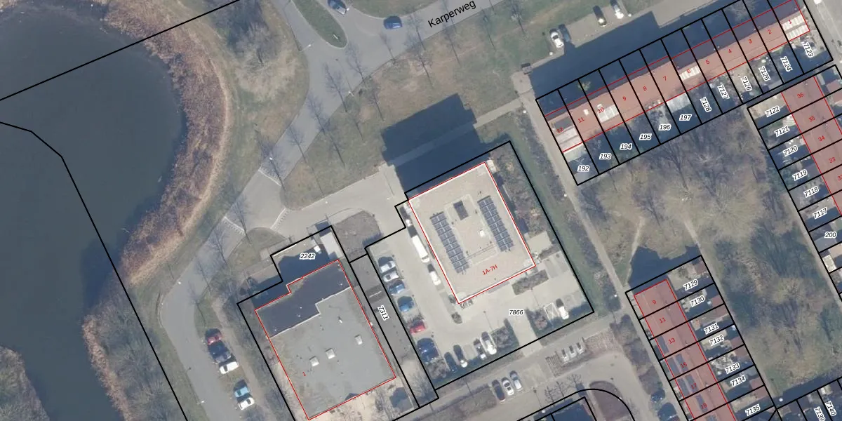 Het perceel waarop het adres ligt is AMR04-P-7866. De afkorting 'AMR04' staat voor kadastrale gemeente Almere. De gemiddelde perceelgrootte in Almere is 3328,15 m². Dit perceel is kleiner: de perceeloppervlakte bedraagt 1815 m². Het grootste perceel in de kadastrale gemeente is 32,12 km². Het kleinste perceel heeft een oppervlakte van 0 m². Er zijn 28 adressen aanwezig op het perceel. In de Basisregistratie Kadaster (BRK) werden de grenzen van het perceel geregistreerd op 14-02-2024.