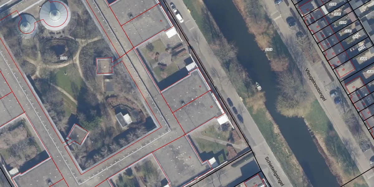 Het perceel waarop Schietwilgsingel 8 staat heeft een oppervlakte van 1,9 ha. Dit is een zeer groot perceel. De perceeloppervlakte wordt geregistreerd door het Kadaster. Gedetailleerde informatie over de maten van dit perceel kunt u vinden in het rapport Kadastrale kaart met maatvoering van Schietwilgsingel 8.