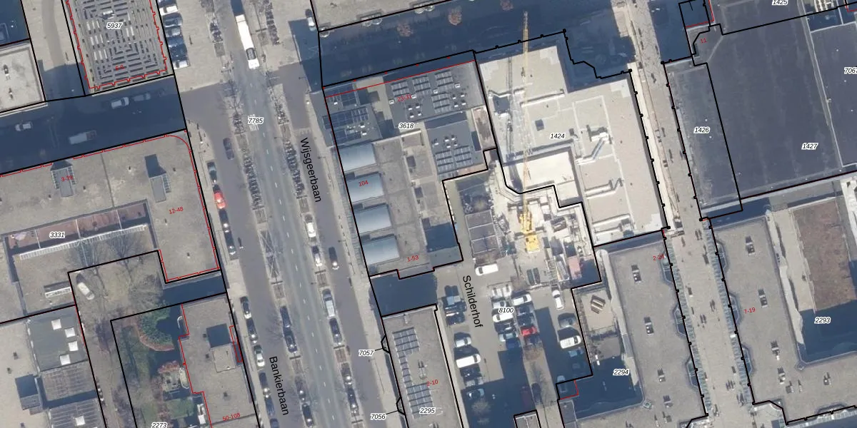 Het perceel waarop Schilderhof 51 staat heeft een oppervlakte van 1418 m². Dit is een zeer groot perceel. De perceeloppervlakte wordt geregistreerd door het Kadaster. Gedetailleerde informatie over de maten van dit perceel kunt u vinden in het rapport Kadastrale kaart met maatvoering van Schilderhof 51.
