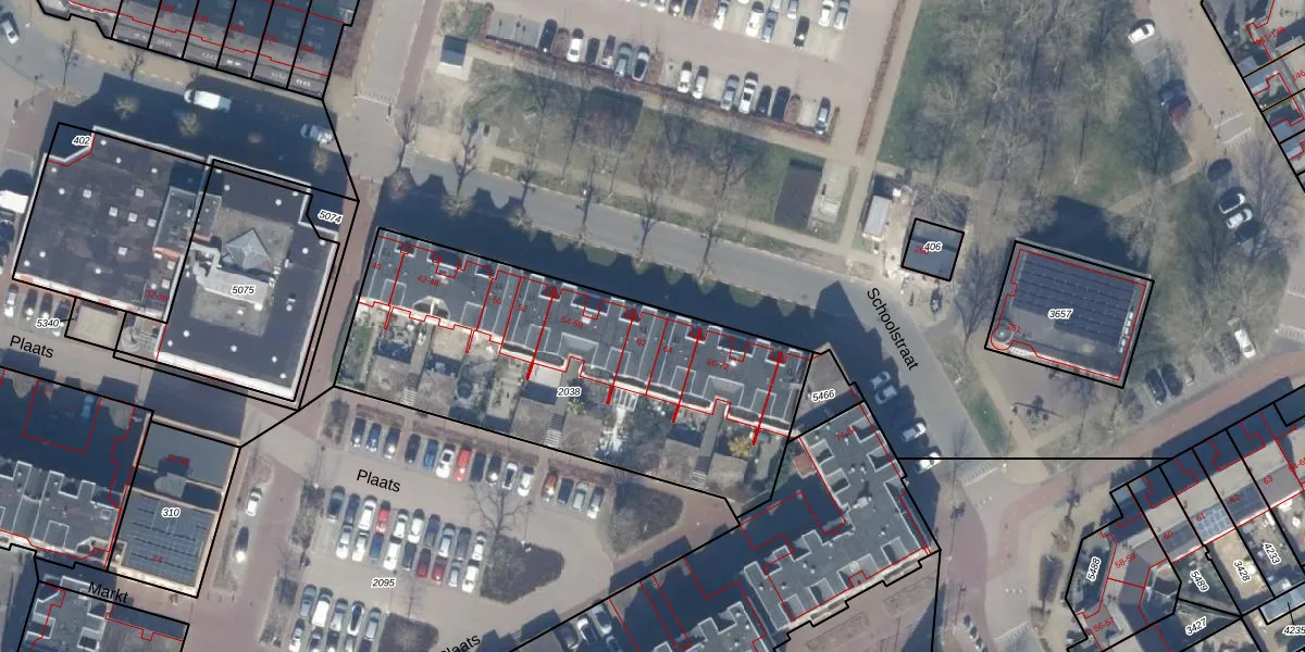 Het perceel waarop Schoolstraat 62 staat heeft een oppervlakte van 1760 m². Dit is een zeer groot perceel. De perceeloppervlakte wordt geregistreerd door het Kadaster. Gedetailleerde informatie over de maten van dit perceel kunt u vinden in het rapport Kadastrale kaart met maatvoering van Schoolstraat 62.