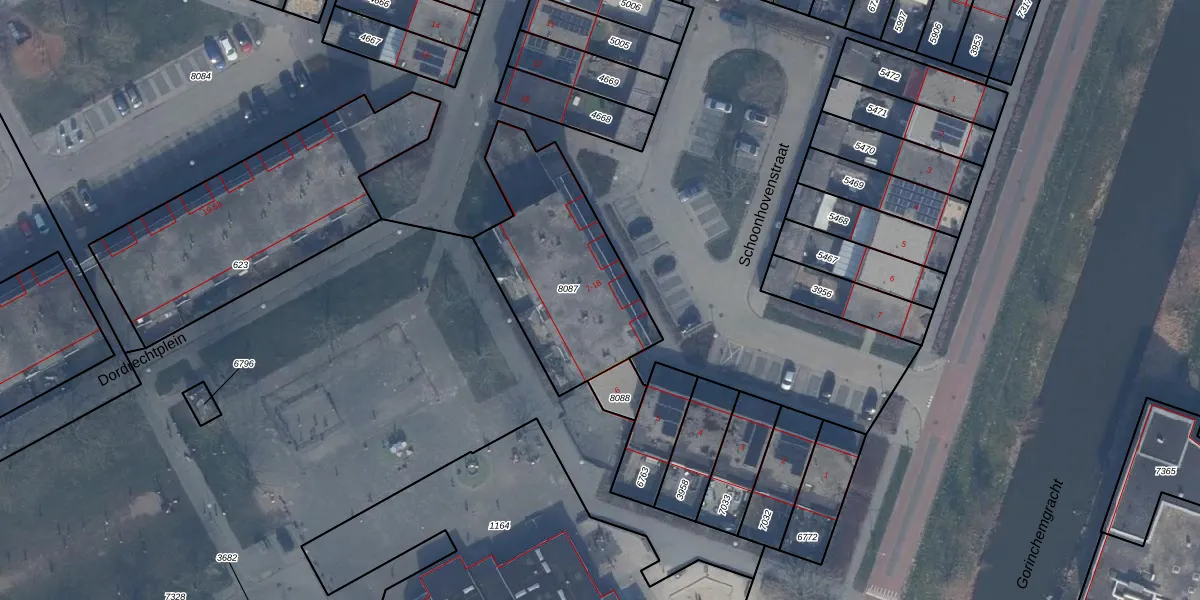 Het perceel waarop Schoonhovenstraat 8 staat heeft een oppervlakte van 728 m². Dit is een groot perceel. De perceeloppervlakte wordt geregistreerd door het Kadaster. Gedetailleerde informatie over de maten van dit perceel kunt u vinden in het rapport Kadastrale kaart met maatvoering van Schoonhovenstraat 8.