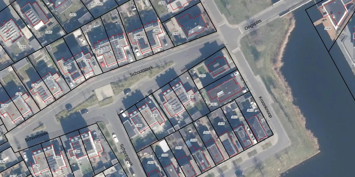Het perceel waarop Schootsteek 1 staat heeft een oppervlakte van 314 m². Dit is een groot perceel. De perceeloppervlakte wordt geregistreerd door het Kadaster. Gedetailleerde informatie over de maten van dit perceel kunt u vinden in het rapport Kadastrale kaart met maatvoering van Schootsteek 1.