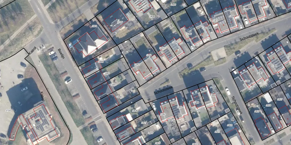 Gebruik de zoekbalk of klik op een perceel voor informatie over de adressen binnen dit perceel.