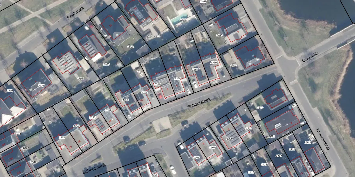 Het perceel waarop Schootsteek 6 staat heeft een oppervlakte van 325 m². Dit is een groot perceel. De perceeloppervlakte wordt geregistreerd door het Kadaster. Gedetailleerde informatie over de maten van dit perceel kunt u vinden in het rapport Kadastrale kaart met maatvoering van Schootsteek 6.
