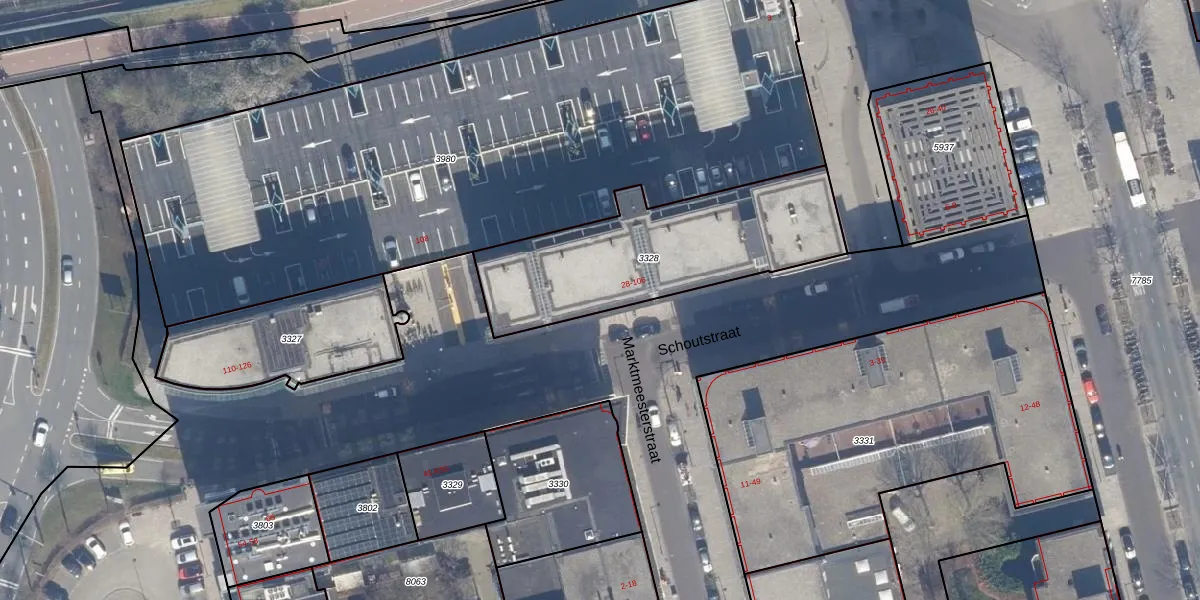 Het perceel waarop Schoutstraat 100 staat heeft een oppervlakte van 921 m². Dit is een groot perceel. De perceeloppervlakte wordt geregistreerd door het Kadaster. Gedetailleerde informatie over de maten van dit perceel kunt u vinden in het rapport Kadastrale kaart met maatvoering van Schoutstraat 100.