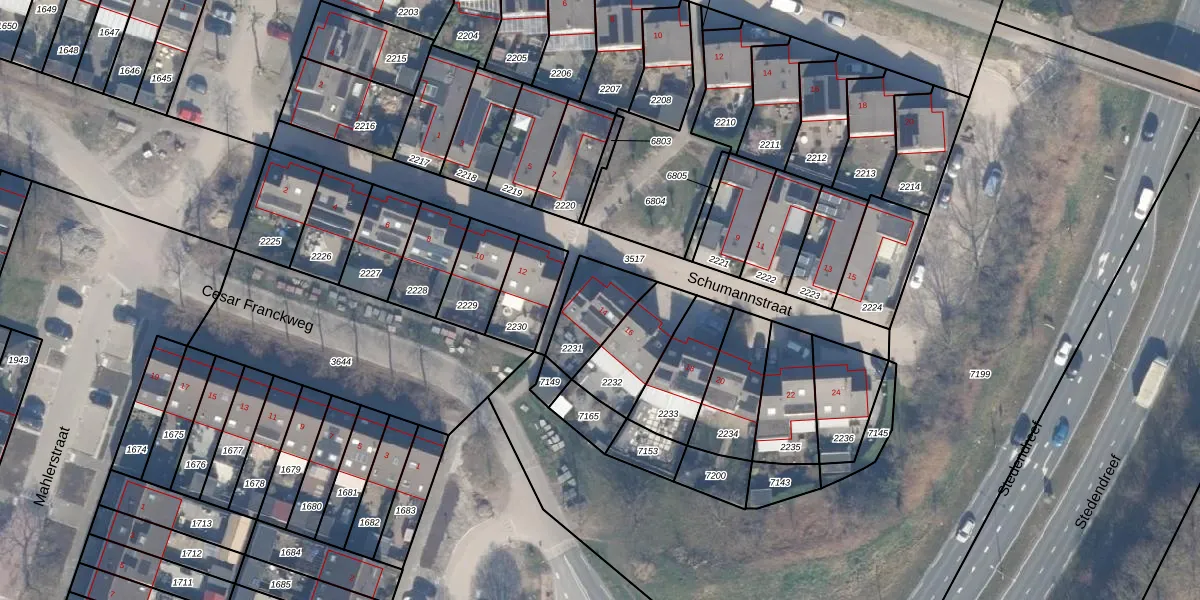 Het perceel waarop Schumannstraat 14 staat heeft een oppervlakte van 183 m². Dit is een middelgroot perceel. De perceeloppervlakte wordt geregistreerd door het Kadaster. Gedetailleerde informatie over de maten van dit perceel kunt u vinden in het rapport Kadastrale kaart met maatvoering van Schumannstraat 14.
