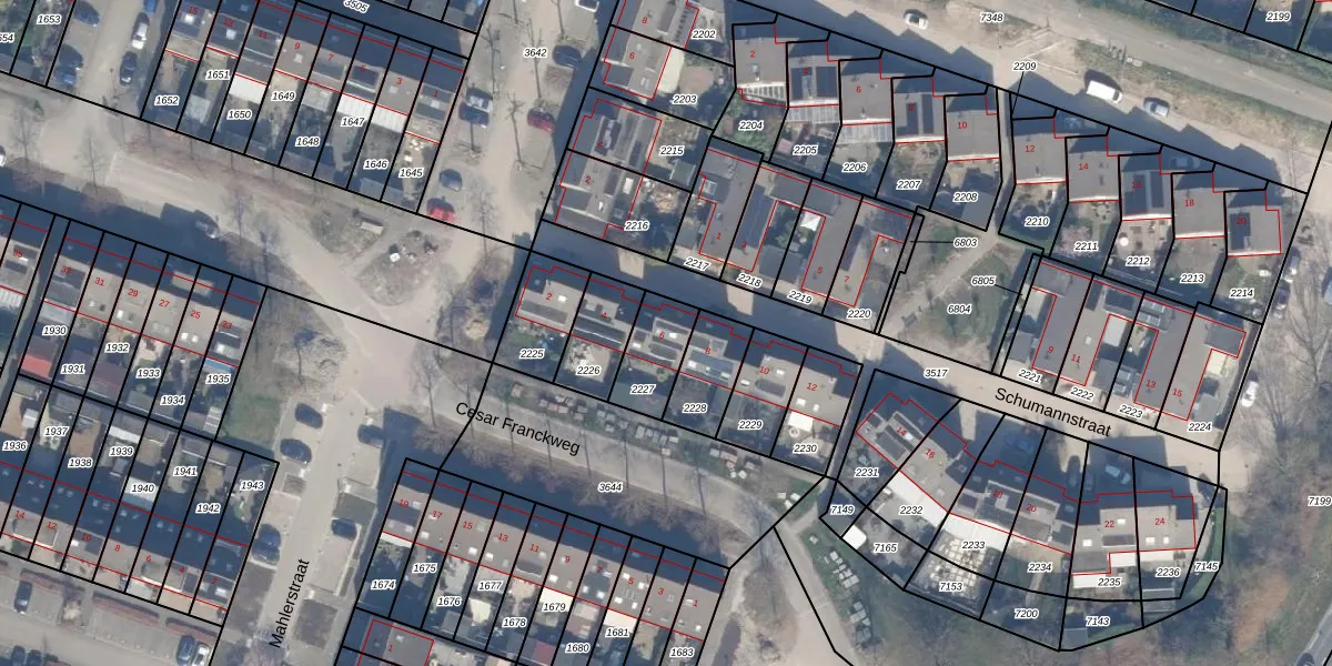 Het perceel waarop Schumannstraat 6 staat heeft een oppervlakte van 153 m². Dit is een middelgroot perceel. De perceeloppervlakte wordt geregistreerd door het Kadaster. Gedetailleerde informatie over de maten van dit perceel kunt u vinden in het rapport Kadastrale kaart met maatvoering van Schumannstraat 6.