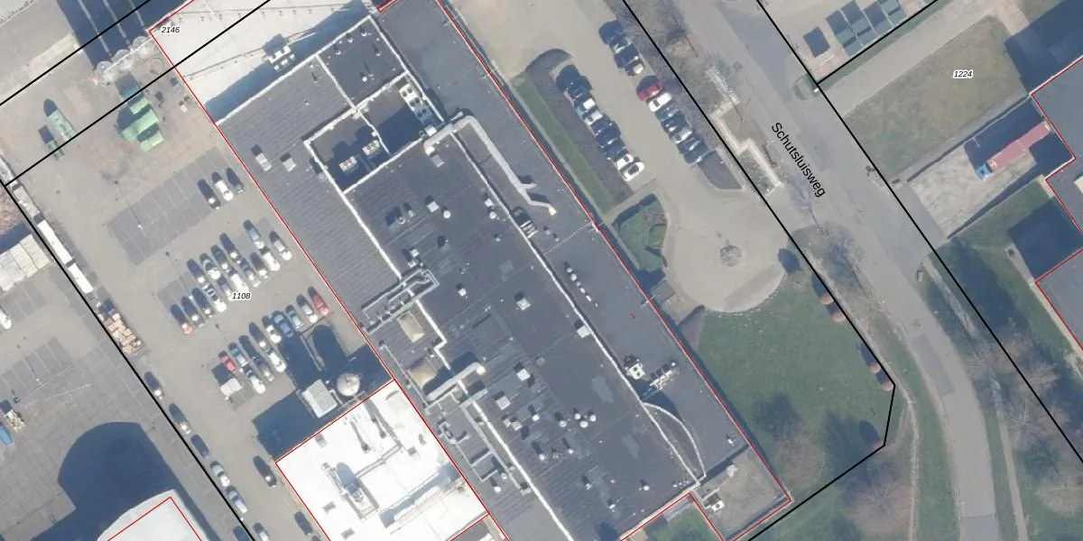 Het perceel waarop Schutsluisweg 1 staat heeft een oppervlakte van 1,5 ha. Dit is een zeer groot perceel. De perceeloppervlakte wordt geregistreerd door het Kadaster. Gedetailleerde informatie over de maten van dit perceel kunt u vinden in het rapport Kadastrale kaart met maatvoering van Schutsluisweg 1.