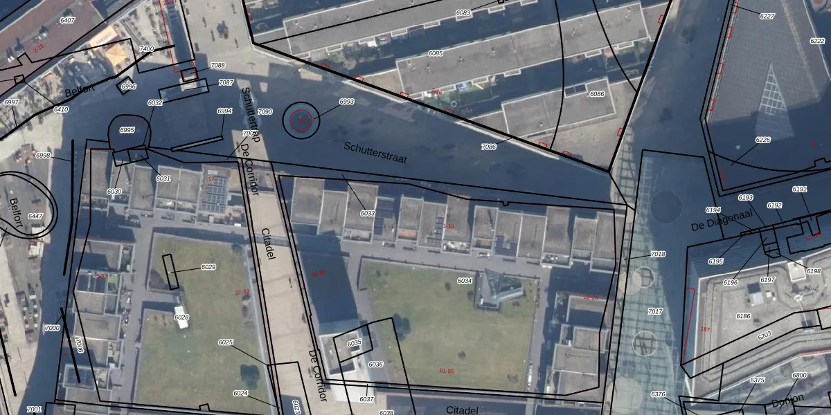 Het perceel waarop Schutterstraat 9 staat heeft een oppervlakte van 3222 m². Dit is een zeer groot perceel. De perceeloppervlakte wordt geregistreerd door het Kadaster. Gedetailleerde informatie over de maten van dit perceel kunt u vinden in het rapport Kadastrale kaart met maatvoering van Schutterstraat 9.