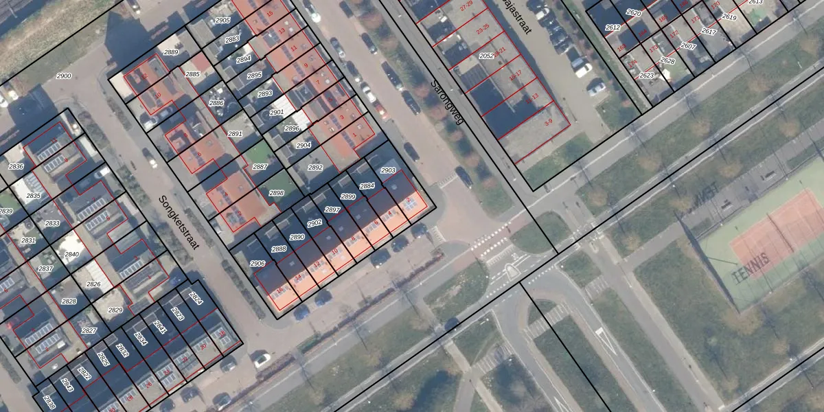 Selendangstraat 2 is gelegen op kadastraal perceel AMR04R2903. Deze kadastrale aanduiding is uniek en wordt gebruikt door het Kadaster om eigendomsrechten en andere zakelijke rechten vast te leggen. Het perceel maakt onderdeel uit van de kadastrale gemeente Almere.