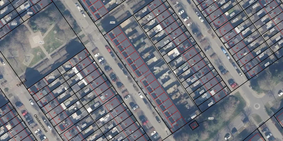 Het perceel waarop Septemberstraat 36 staat heeft een oppervlakte van 2165 m². Dit is een zeer groot perceel. De perceeloppervlakte wordt geregistreerd door het Kadaster. Gedetailleerde informatie over de maten van dit perceel kunt u vinden in het rapport Kadastrale kaart met maatvoering van Septemberstraat 36.