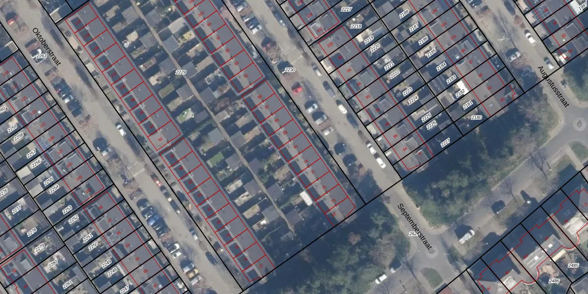 Het perceel waarop Septemberstraat 81 staat heeft een oppervlakte van 5666 m². Dit is een zeer groot perceel. De perceeloppervlakte wordt geregistreerd door het Kadaster. Gedetailleerde informatie over de maten van dit perceel kunt u vinden in het rapport Kadastrale kaart met maatvoering van Septemberstraat 81.
