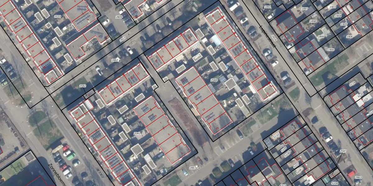 Het perceel waarop Seringstraat 15 staat heeft een oppervlakte van 2875 m². Dit is een zeer groot perceel. De perceeloppervlakte wordt geregistreerd door het Kadaster. Gedetailleerde informatie over de maten van dit perceel kunt u vinden in het rapport Kadastrale kaart met maatvoering van Seringstraat 15.