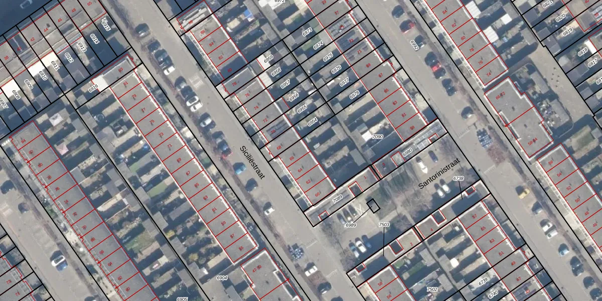 Het perceel waarop Siciliëstraat 66 staat heeft een oppervlakte van 1112 m². Dit is een zeer groot perceel. De perceeloppervlakte wordt geregistreerd door het Kadaster. Gedetailleerde informatie over de maten van dit perceel kunt u vinden in het rapport Kadastrale kaart met maatvoering van Siciliëstraat 66.