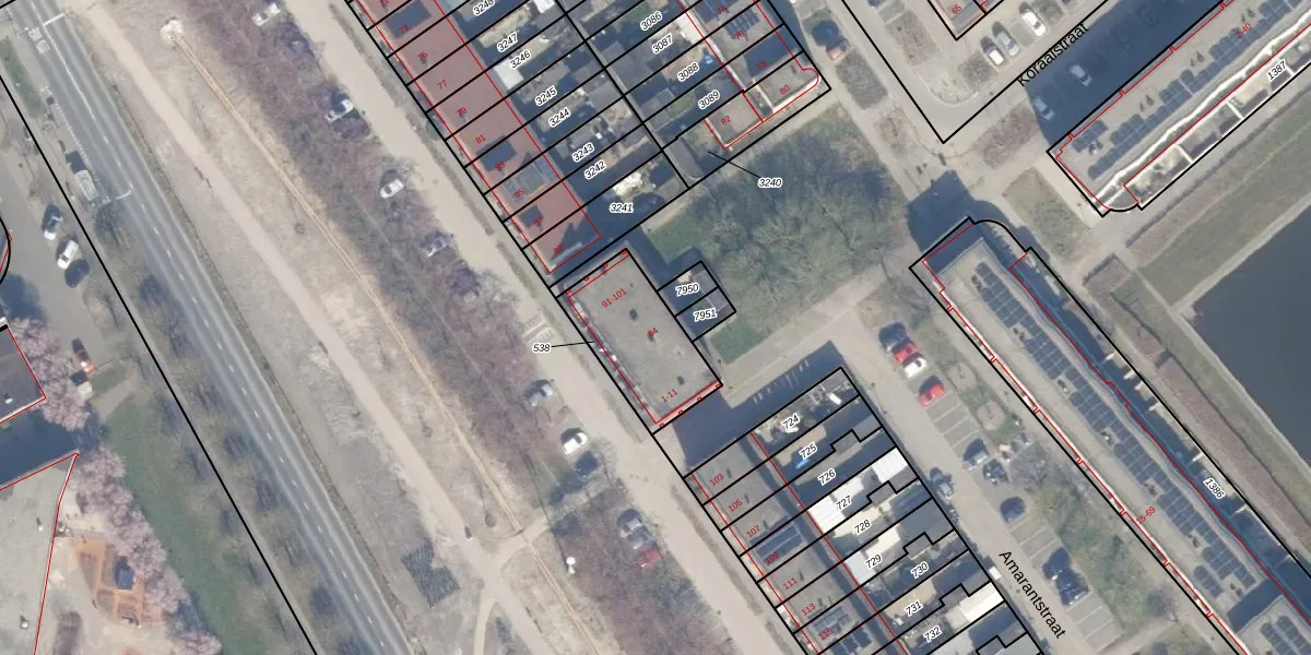 Het perceel waarop het adres ligt is AMR04-B-538. De afkorting 'AMR04' staat voor kadastrale gemeente Almere. Het perceel is 336 m² groot. Dat is kleiner dan de gemiddelde perceeloppervlakte in Almere, dat op 3329,36 m² ligt. De grootste perceeloppervlakte in de kadastrale gemeente is 32,12 km². De kleinste oppervlakte bedraagt 0 m². Op het perceel liggen in totaal 14 adressen. In de Basisregistratie Kadaster (BRK) werden de grenzen van het perceel geregistreerd op 19-09-2023.