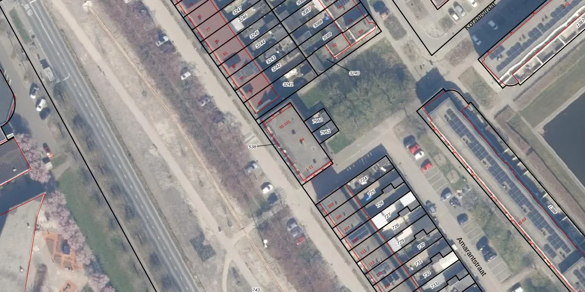 Het perceel waarop het adres ligt is AMR04-B-538. De afkorting 'AMR04' staat voor kadastrale gemeente Almere. Het perceel is 336 m² groot. Dat is kleiner dan de gemiddelde perceeloppervlakte in Almere, dat op 3329,36 m² ligt. De grootste perceeloppervlakte in de kadastrale gemeente is 32,12 km². De kleinste oppervlakte bedraagt 0 m². Op het perceel liggen in totaal 14 adressen. De huidige grenzen van het perceel zijn digitaal in de Basisregistratie Kadaster (BRK) geregistreerd op 19-09-2023.