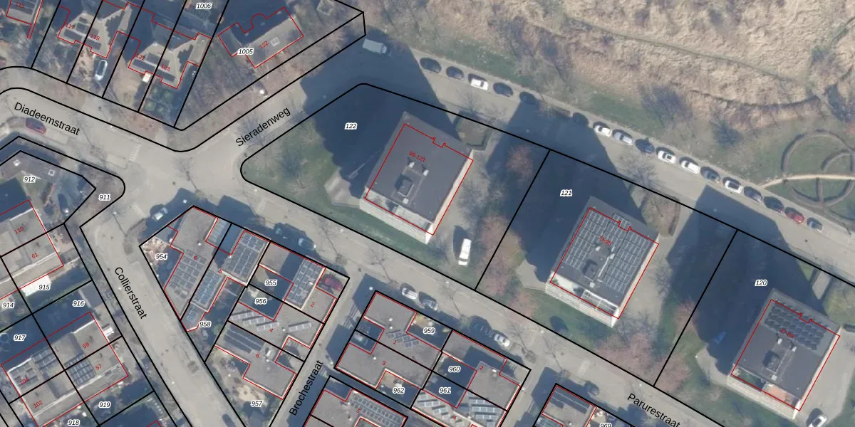 Sieradenweg 115 is gelegen op kadastraal perceel AMR04R122. Deze kadastrale aanduiding is uniek en wordt gebruikt door het Kadaster om eigendomsrechten en andere zakelijke rechten vast te leggen. Het perceel maakt onderdeel uit van de kadastrale gemeente Almere.