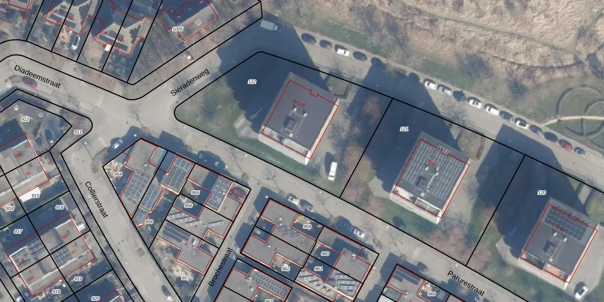Sieradenweg 119 is gelegen op kadastraal perceel AMR04R122. Deze kadastrale aanduiding is uniek en wordt gebruikt door het Kadaster om eigendomsrechten en andere zakelijke rechten vast te leggen. Het perceel maakt onderdeel uit van de kadastrale gemeente Almere.