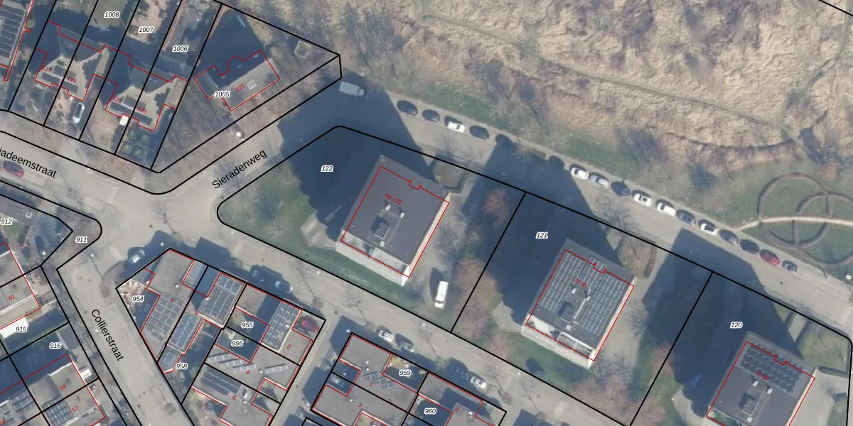 Sieradenweg 99 is gelegen op kadastraal perceel AMR04R122. Deze kadastrale aanduiding is uniek en wordt gebruikt door het Kadaster om eigendomsrechten en andere zakelijke rechten vast te leggen. Het perceel maakt onderdeel uit van de kadastrale gemeente Almere.