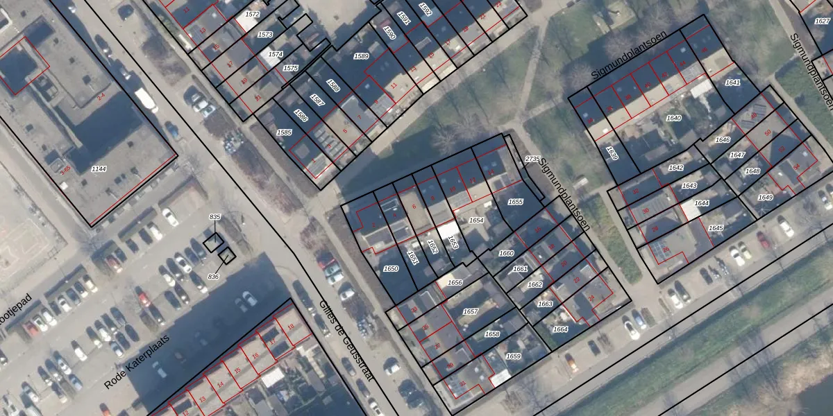 Gebruik de zoekbalk of klik op een perceel voor informatie over de adressen binnen dit perceel.