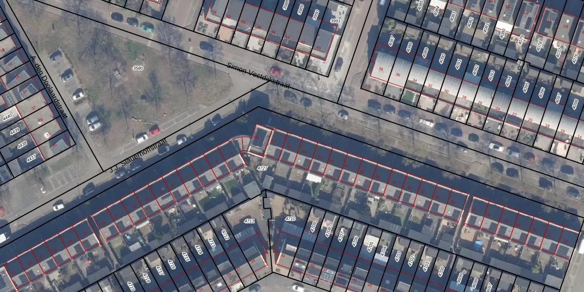 Het perceel waarop Simon Vestdijkstraat 55 staat heeft een oppervlakte van 5629 m². Dit is een zeer groot perceel. De perceeloppervlakte wordt geregistreerd door het Kadaster. Gedetailleerde informatie over de maten van dit perceel kunt u vinden in het rapport Kadastrale kaart met maatvoering van Simon Vestdijkstraat 55.