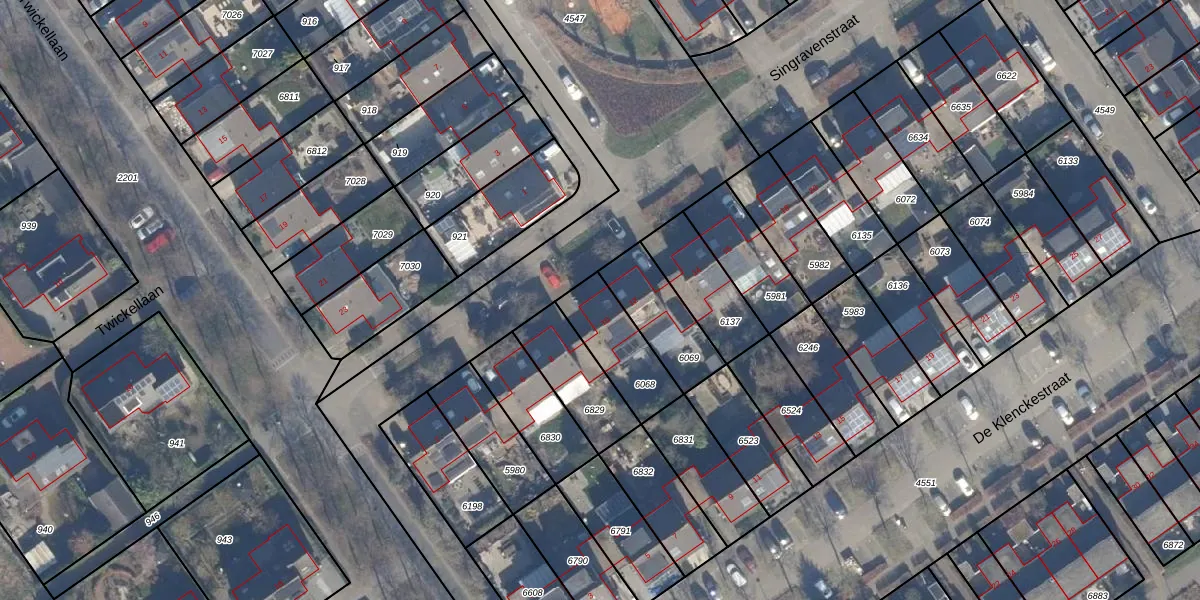 Gebruik de zoekbalk of klik op een perceel voor informatie over de adressen binnen dit perceel.