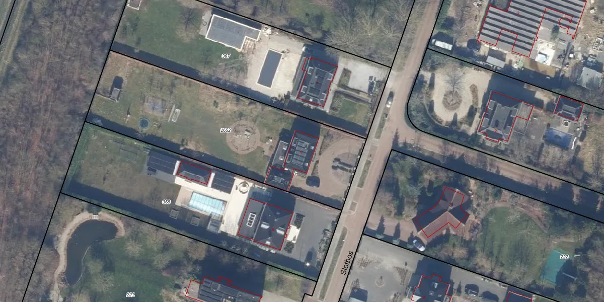 Het perceel waarop Slotbos 6 staat heeft een oppervlakte van 2250 m². Dit is een zeer groot perceel. De perceeloppervlakte wordt geregistreerd door het Kadaster. Gedetailleerde informatie over de maten van dit perceel kunt u vinden in het rapport Kadastrale kaart met maatvoering van Slotbos 6.