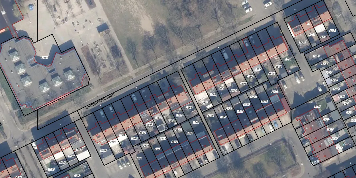 Slufterplantsoen 45 is gelegen op kadastraal perceel AMR04O1668. Deze kadastrale aanduiding is uniek en wordt gebruikt door het Kadaster om eigendomsrechten en andere zakelijke rechten vast te leggen. Het perceel maakt onderdeel uit van de kadastrale gemeente Almere.