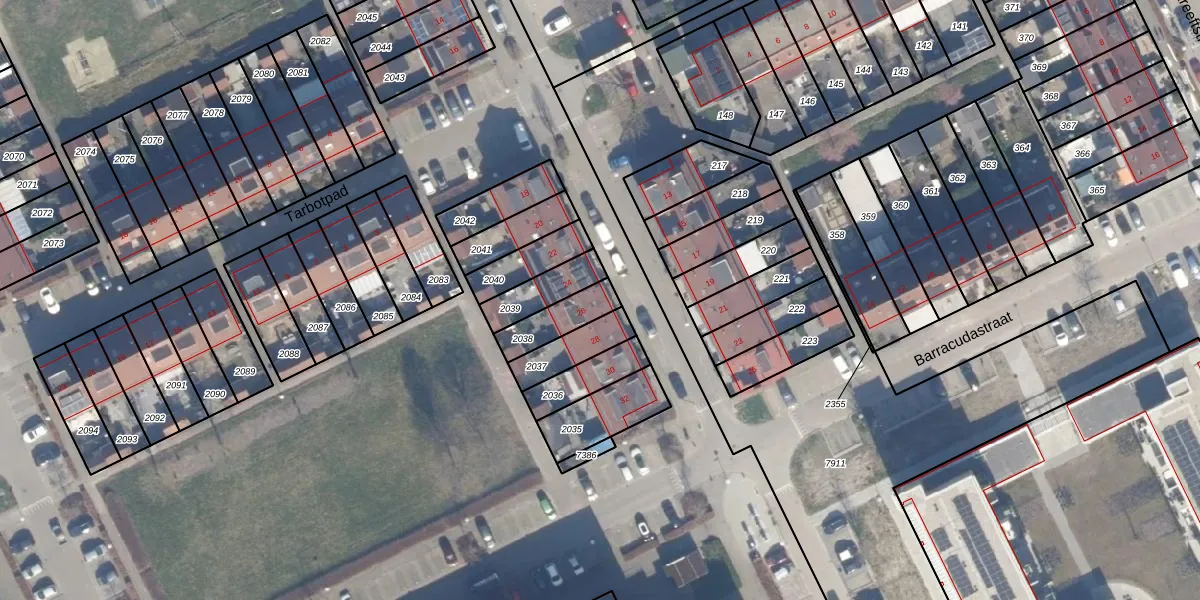 Gebruik de zoekbalk of klik op een perceel voor informatie over de adressen binnen dit perceel.