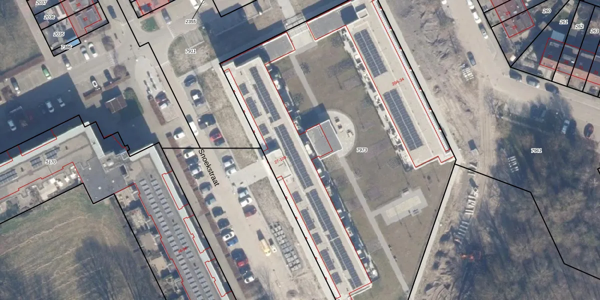Snoekstraat 33 is gelegen op kadastraal perceel AMR04P7973. Deze kadastrale aanduiding is uniek en wordt gebruikt door het Kadaster om eigendomsrechten en andere zakelijke rechten vast te leggen. Het perceel maakt onderdeel uit van de kadastrale gemeente Almere.