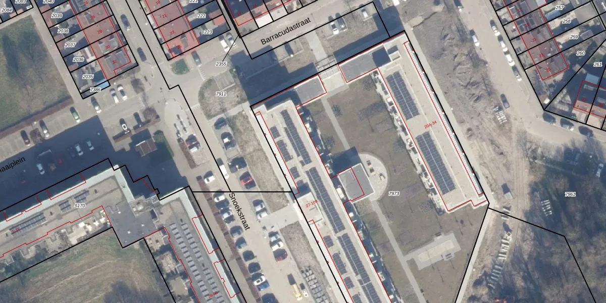 Snoekstraat 49 is gelegen op kadastraal perceel AMR04P7973. Deze kadastrale aanduiding is uniek en wordt gebruikt door het Kadaster om eigendomsrechten en andere zakelijke rechten vast te leggen. Het perceel maakt onderdeel uit van de kadastrale gemeente Almere.
