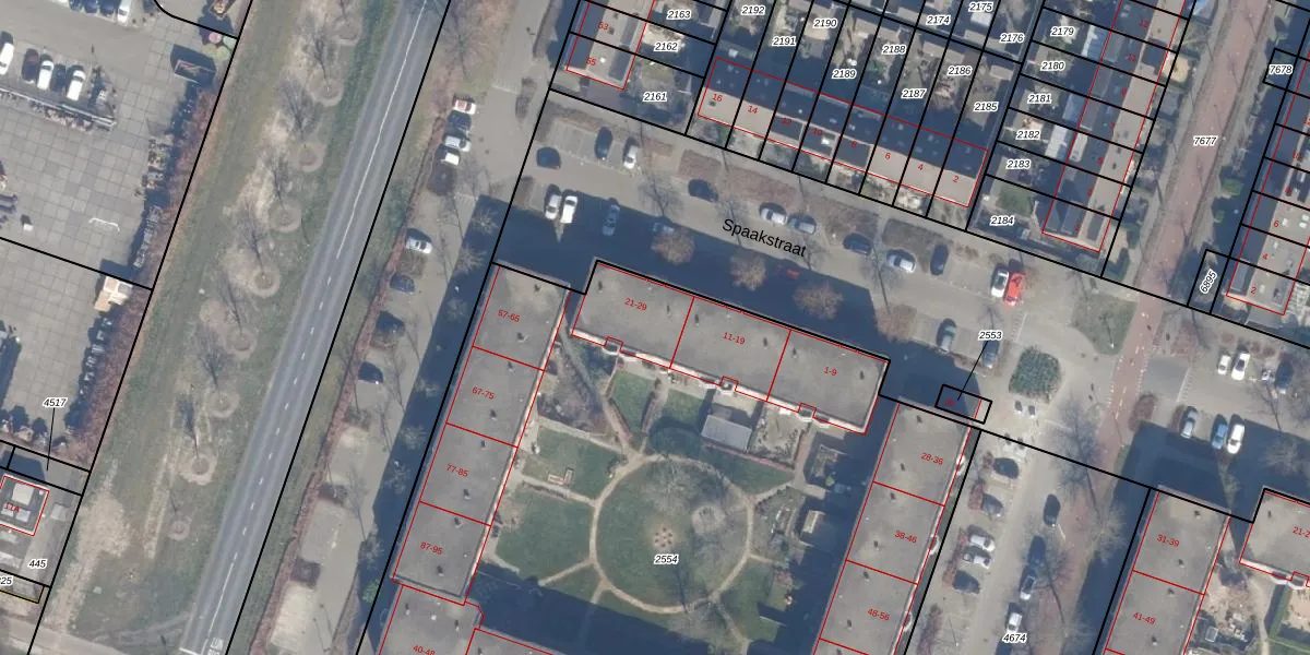 Het perceel waarop Spaakstraat 27 staat heeft een oppervlakte van 5451 m². Dit is een zeer groot perceel. De perceeloppervlakte wordt geregistreerd door het Kadaster. Gedetailleerde informatie over de maten van dit perceel kunt u vinden in het rapport Kadastrale kaart met maatvoering van Spaakstraat 27.