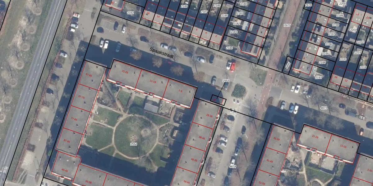 Spaakstraat 3 is gelegen op kadastraal perceel AMR04O2554. Deze kadastrale aanduiding is uniek en wordt gebruikt door het Kadaster om eigendomsrechten en andere zakelijke rechten vast te leggen. Het perceel maakt onderdeel uit van de kadastrale gemeente Almere.