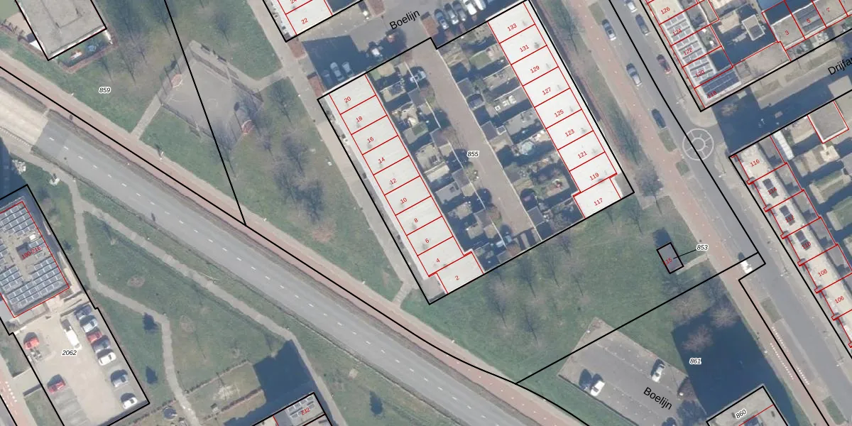 Het adres is gelegen op perceel 855 in de sectie E en de kadastrale gemeente Almere. De kadastrale aanduiding is aldus AMR04-E-855. De gemiddelde perceelgrootte in Almere is 3327,62 m². Dit perceel is kleiner: de perceeloppervlakte bedraagt 2926 m². Het grootste perceel in de kadastrale gemeente is 32,12 km². Het kleinste perceel heeft een oppervlakte van 0 m². Op het perceel liggen in totaal 19 adressen. De laatste wijziging in het de Basisregistratie Kadaster (BRK) was op 20-01-2009.