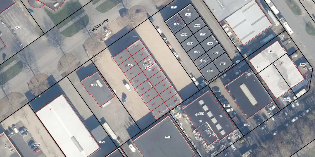 Het perceel waarop Splijtbakweg 72-M staat heeft een oppervlakte van 2534 m². Dit is een zeer groot perceel. De perceeloppervlakte wordt geregistreerd door het Kadaster. Gedetailleerde informatie over de maten van dit perceel kunt u vinden in het rapport Kadastrale kaart met maatvoering van Splijtbakweg 72-M.
