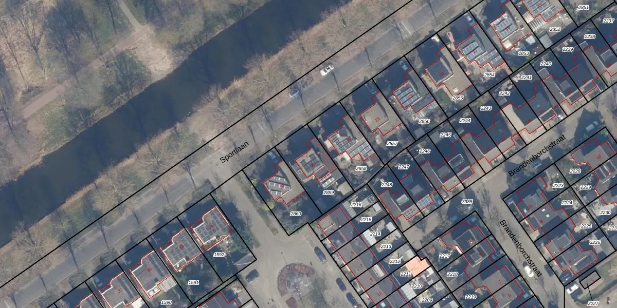 Gebruik de zoekbalk of klik op een perceel voor informatie over de adressen binnen dit perceel.