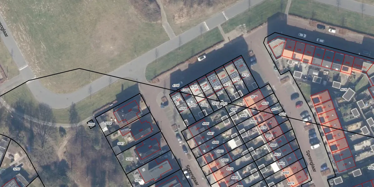 Sprenglaar 144 is gelegen op kadastraal perceel AMR04G4709. Deze kadastrale aanduiding is uniek en wordt gebruikt door het Kadaster om eigendomsrechten en andere zakelijke rechten vast te leggen. Het perceel maakt onderdeel uit van de kadastrale gemeente Almere.