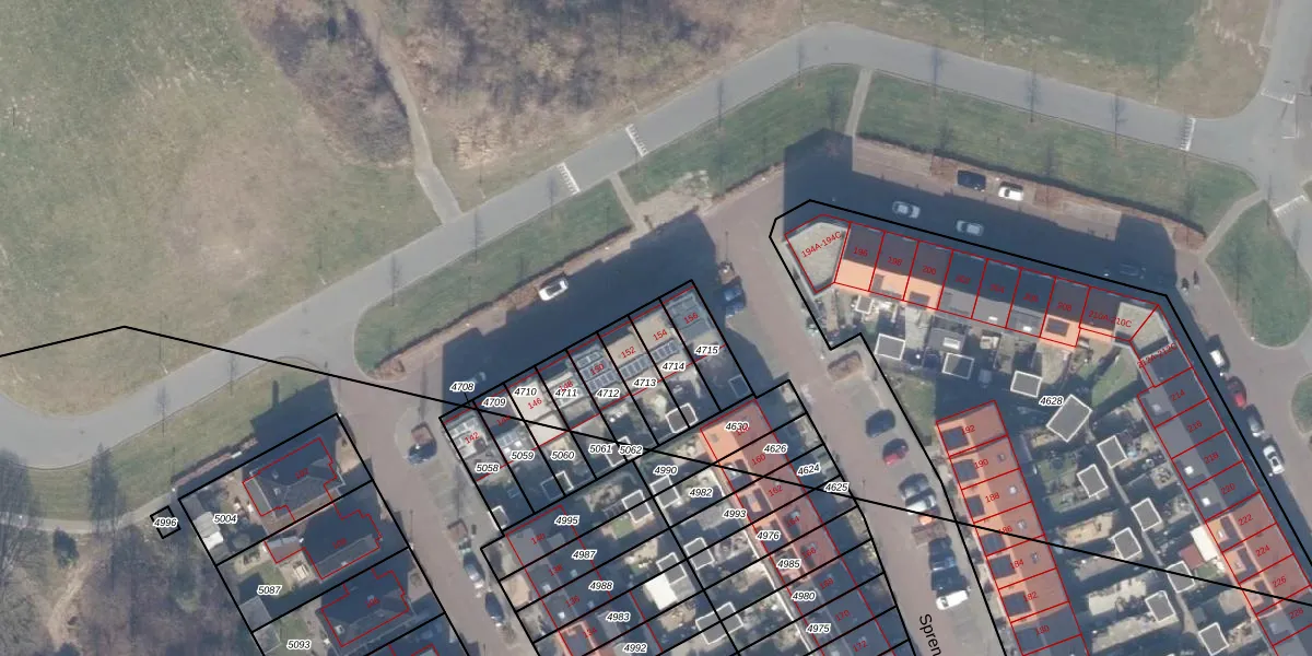 Het perceel waarop Sprenglaar 154 staat heeft een oppervlakte van 107 m². Dit is een middelgroot perceel. De perceeloppervlakte wordt geregistreerd door het Kadaster. Gedetailleerde informatie over de maten van dit perceel kunt u vinden in het rapport Kadastrale kaart met maatvoering van Sprenglaar 154.