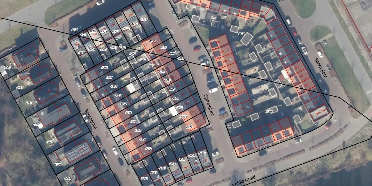 Het perceel waarop Sprenglaar 170 staat heeft een oppervlakte van 135 m². Dit is een middelgroot perceel. De perceeloppervlakte wordt geregistreerd door het Kadaster. Gedetailleerde informatie over de maten van dit perceel kunt u vinden in het rapport Kadastrale kaart met maatvoering van Sprenglaar 170.
