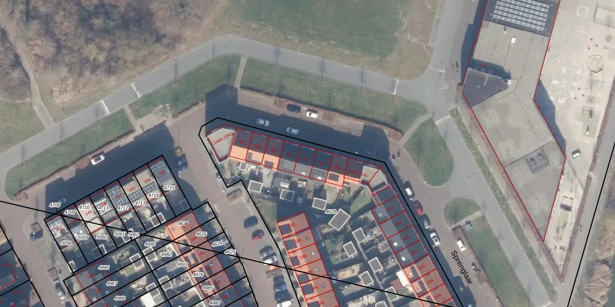Het perceel waarop Sprenglaar 204 staat heeft een oppervlakte van 2555 m². Dit is een zeer groot perceel. De perceeloppervlakte wordt geregistreerd door het Kadaster. Gedetailleerde informatie over de maten van dit perceel kunt u vinden in het rapport Kadastrale kaart met maatvoering van Sprenglaar 204.