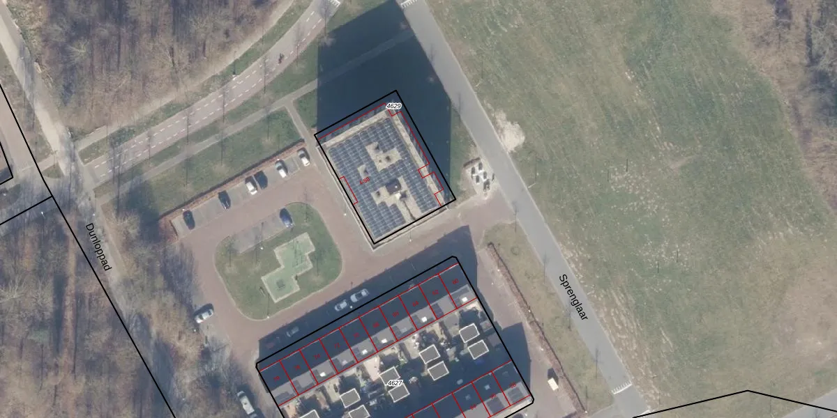Sprenglaar 50 is gelegen op kadastraal perceel AMR04G4629. Deze kadastrale aanduiding is uniek en wordt gebruikt door het Kadaster om eigendomsrechten en andere zakelijke rechten vast te leggen. Het perceel maakt onderdeel uit van de kadastrale gemeente Almere.