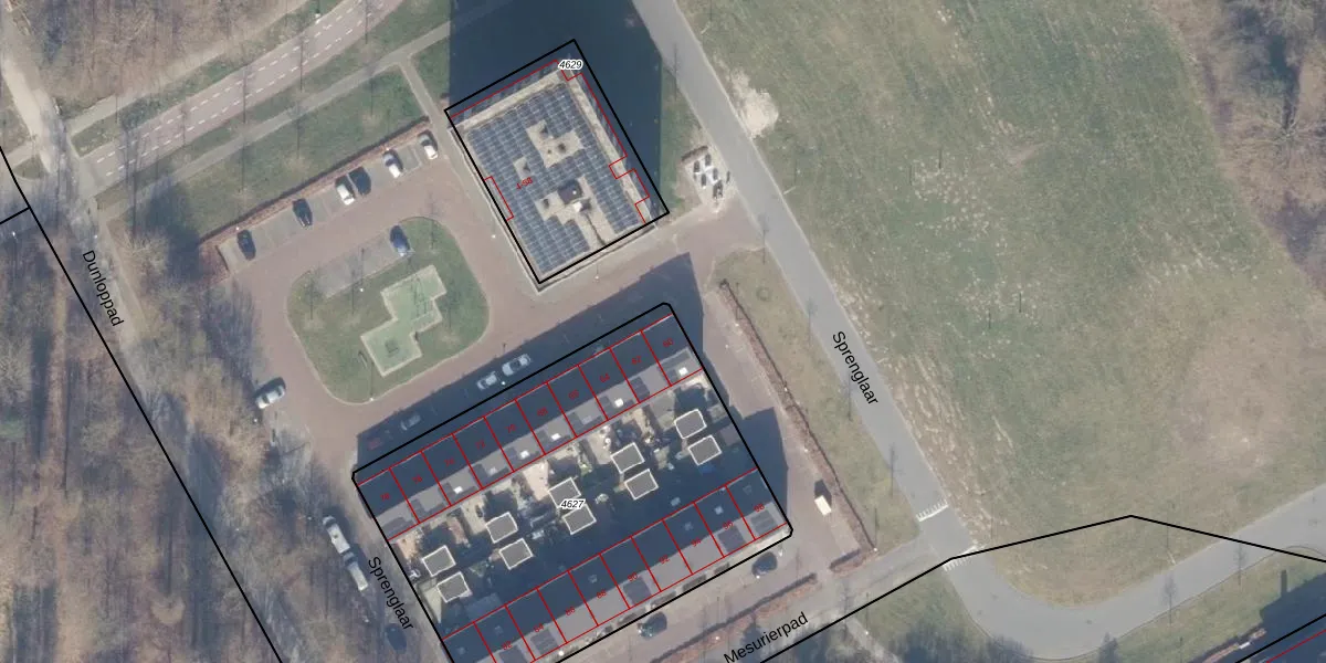 Het perceel waarop Sprenglaar 60 staat heeft een oppervlakte van 2175 m². Dit is een zeer groot perceel. De perceeloppervlakte wordt geregistreerd door het Kadaster. Gedetailleerde informatie over de maten van dit perceel kunt u vinden in het rapport Kadastrale kaart met maatvoering van Sprenglaar 60.