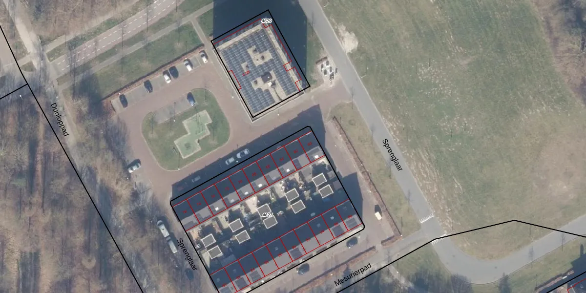 Het perceel waarop Sprenglaar 62 staat heeft een oppervlakte van 2175 m². Dit is een zeer groot perceel. De perceeloppervlakte wordt geregistreerd door het Kadaster. Gedetailleerde informatie over de maten van dit perceel kunt u vinden in het rapport Kadastrale kaart met maatvoering van Sprenglaar 62.