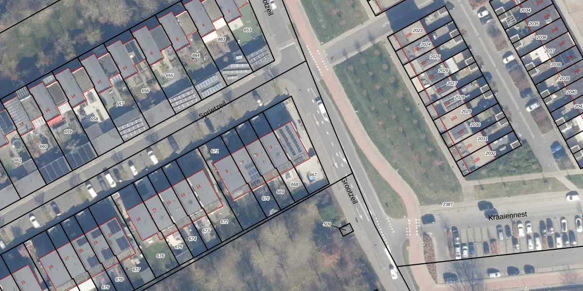Gebruik de zoekbalk of klik op een perceel voor informatie over de adressen binnen dit perceel.