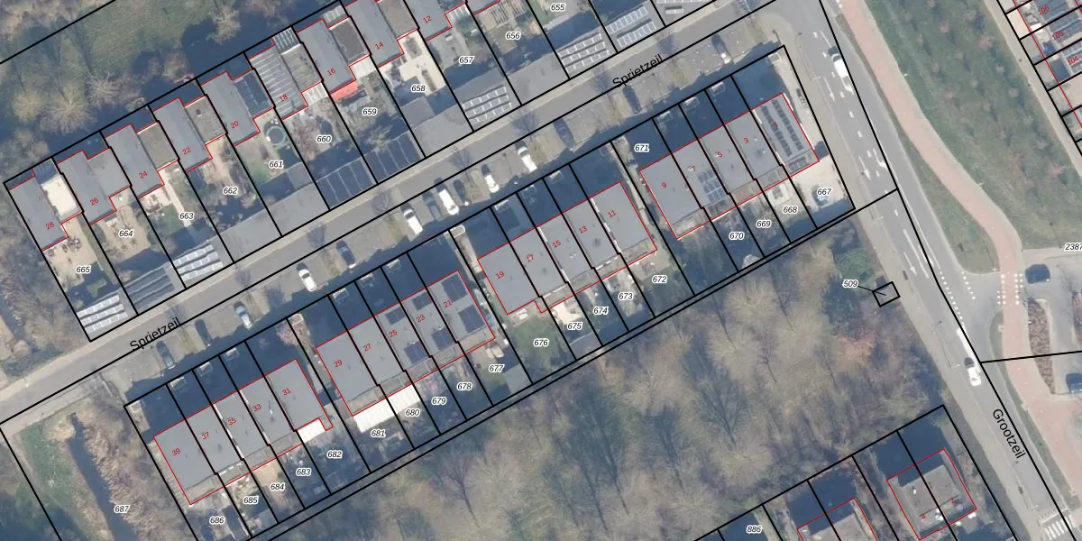 Het perceel waarop Sprietzeil 17 staat heeft een oppervlakte van 181 m². Dit is een middelgroot perceel. De perceeloppervlakte wordt geregistreerd door het Kadaster. Gedetailleerde informatie over de maten van dit perceel kunt u vinden in het rapport Kadastrale kaart met maatvoering van Sprietzeil 17.