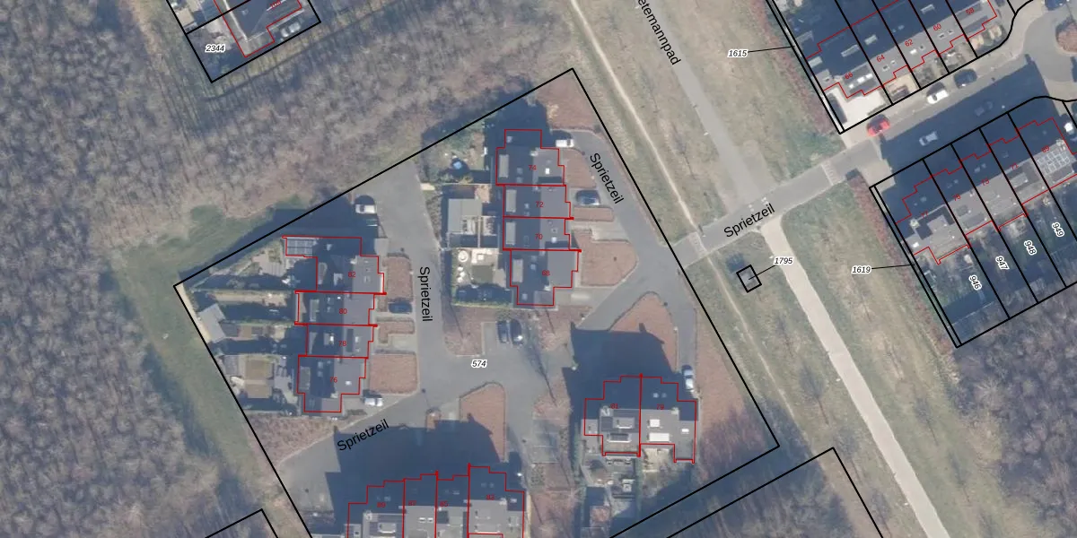 Het perceel waarop Sprietzeil 68 staat heeft een oppervlakte van 6749 m². Dit is een zeer groot perceel. De perceeloppervlakte wordt geregistreerd door het Kadaster. Gedetailleerde informatie over de maten van dit perceel kunt u vinden in het rapport Kadastrale kaart met maatvoering van Sprietzeil 68.